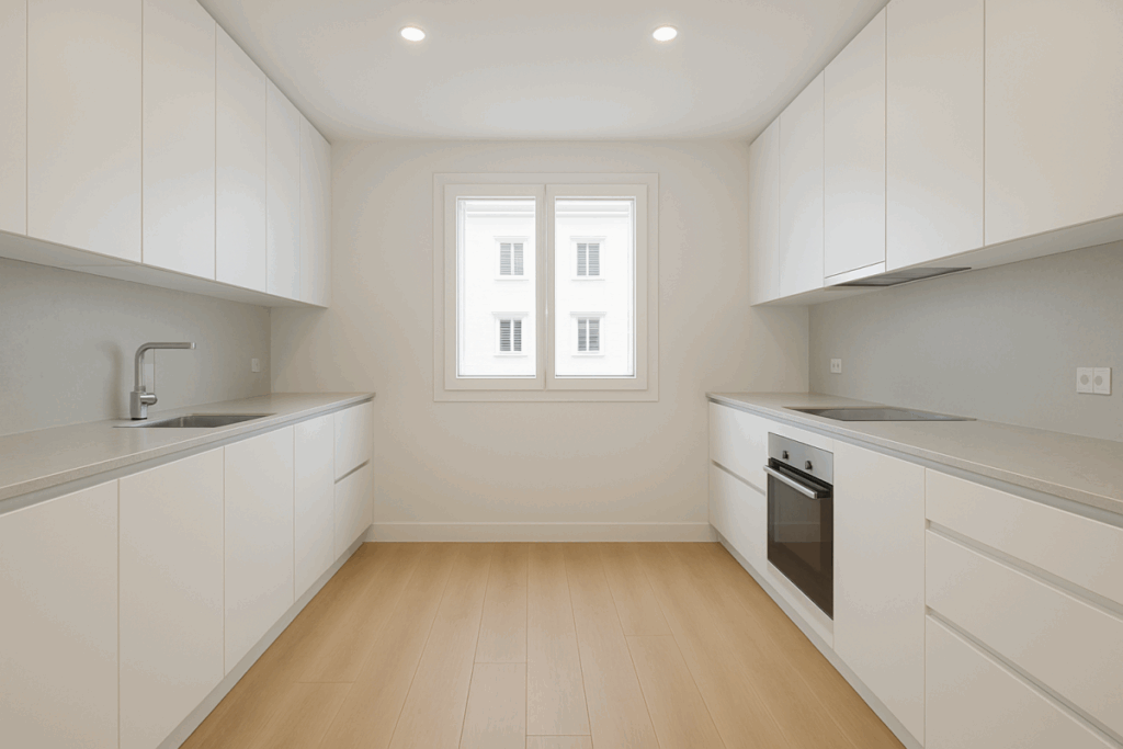 - Muebles hasta el techo: se aprovecha al máximo la altura, ganando capacidad de almacenaje y evitando “huecos muertos”.