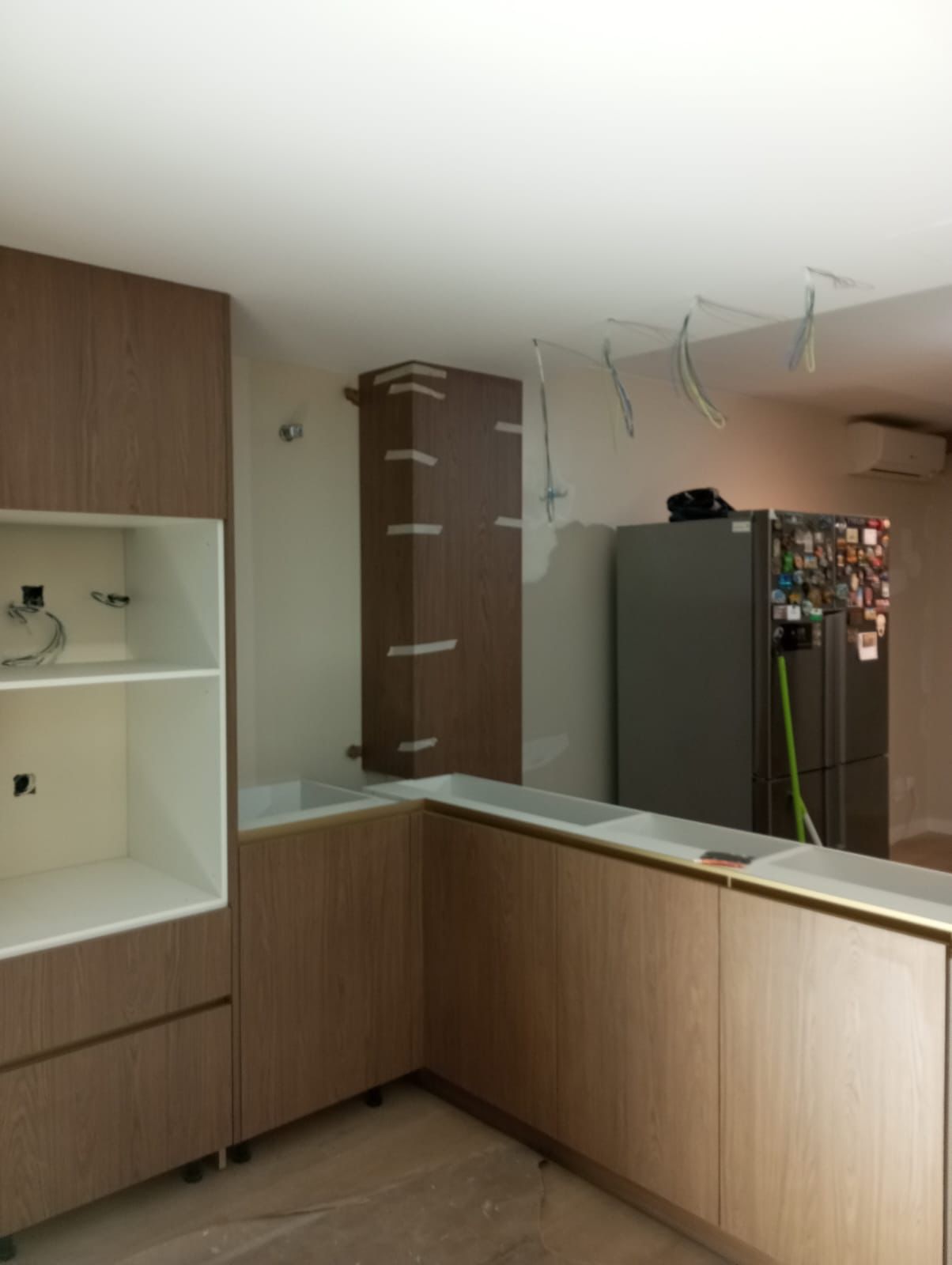 Reforma integral en Cornellá de Llobregat. Instalación de parquet laminado, puertas lacadas, mobiliario de cocina a medida, encimera de Neolith…